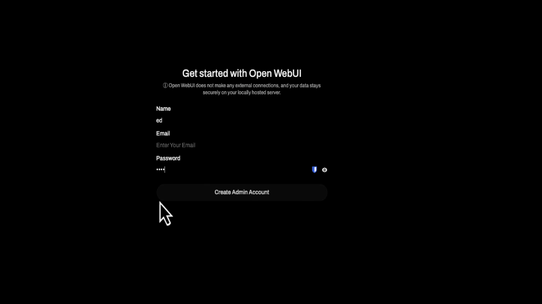 Once both containers are running, open the Open WebUI web interface and set up an account.