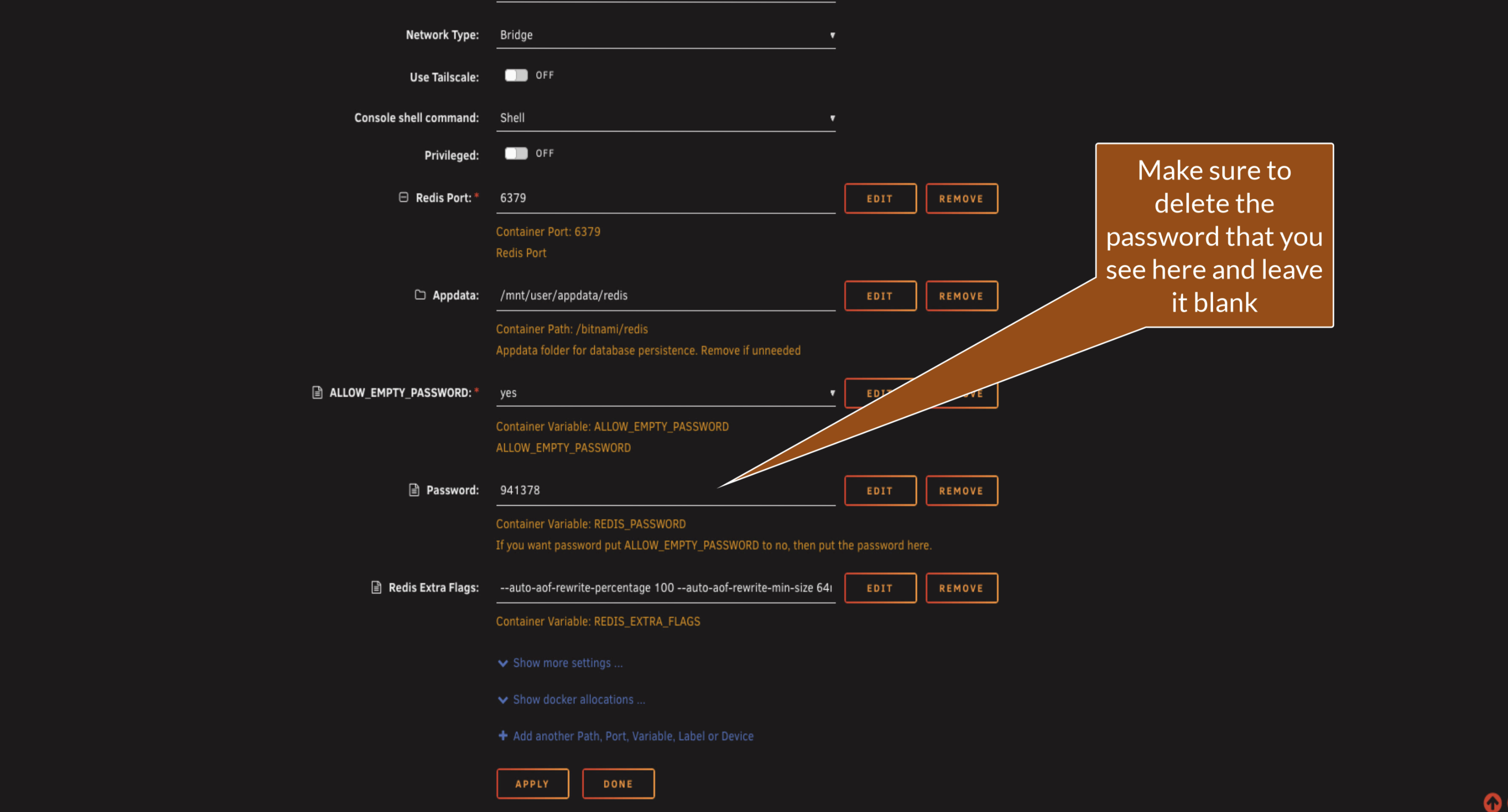 Set a strong Redis password in the template and ensure authentication is enabled. You'll use this password in the Paperless configuration later. Treat this like any other application password: store it securely and don't reuse it elsewhere.